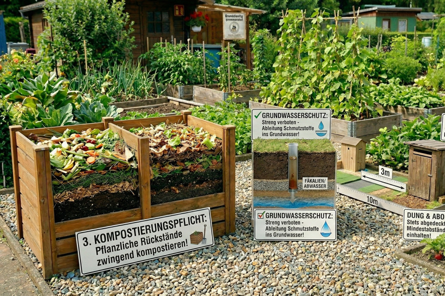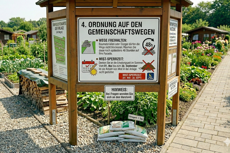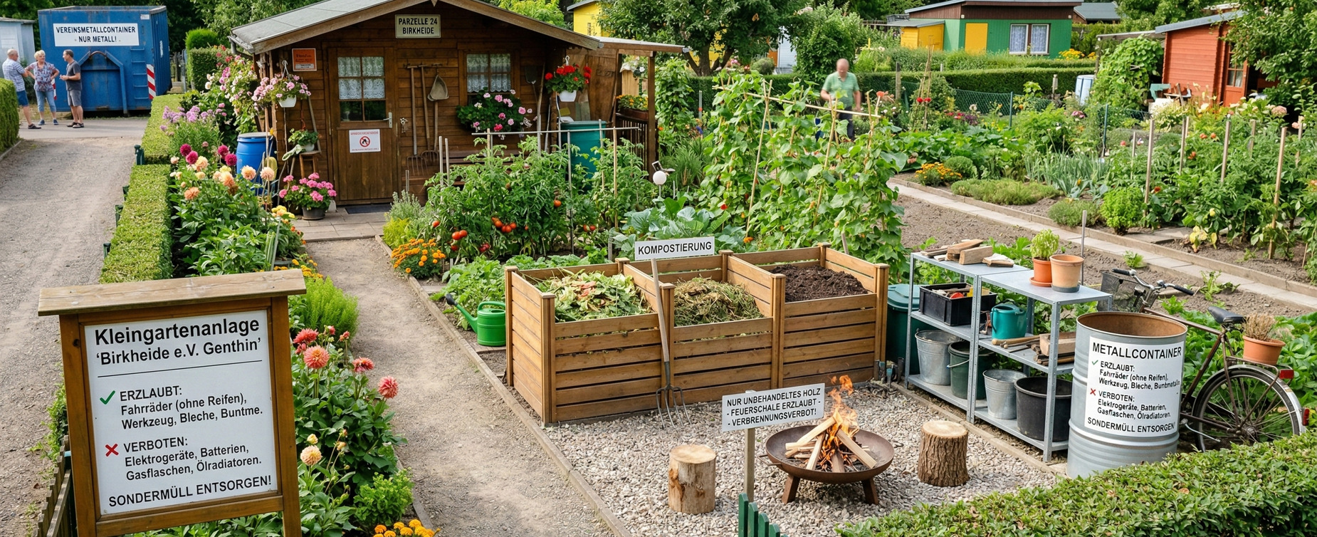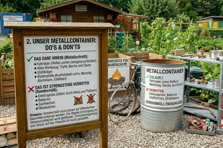 Hinweis: Sondermüll muss privat auf öffentlichen Deponien entsorgt werden. Die illegale Entsorgung im Vereinscontainer auf Kosten der Gemeinschaft wird geahndet. Auch die Zwischenlagerung von Unrat oder Sperrmüll auf der eigenen Parzelle ist nicht gestattet.
